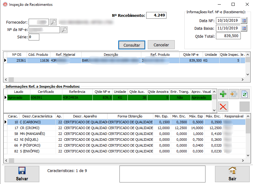 Inspeção de Recebimento.Documentação da Qualidade (possibilidade de armazenar e amarrar ao Recebimento os documentos inerentes a qualidade) Gestão e controle de aprovação (com possibilidade de aprovar condicional)