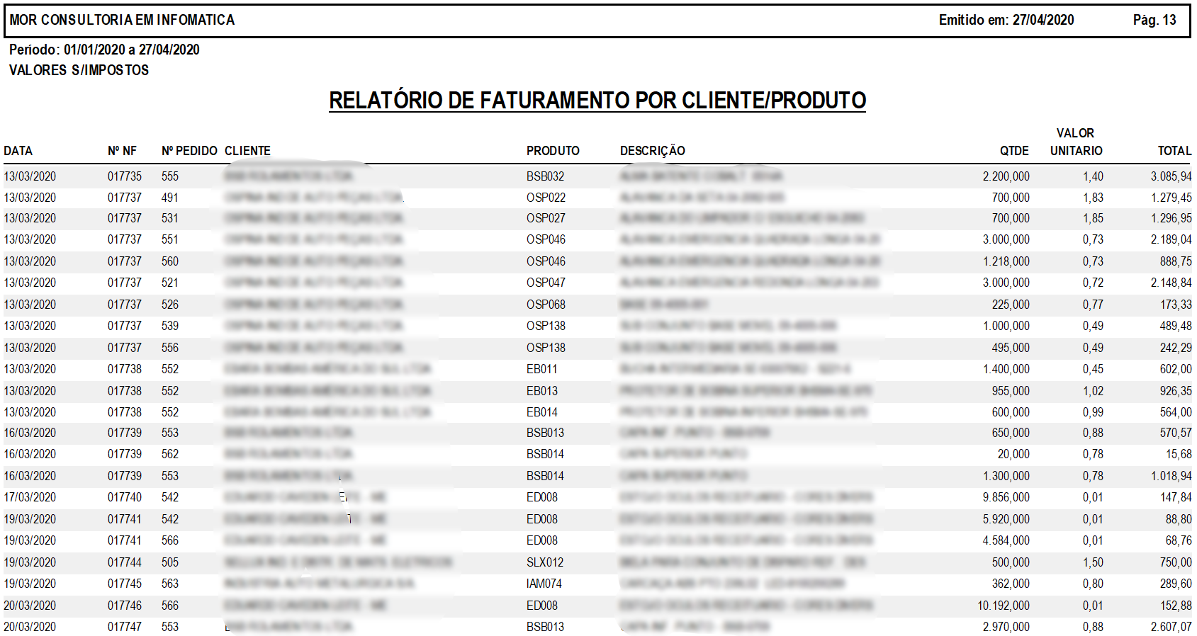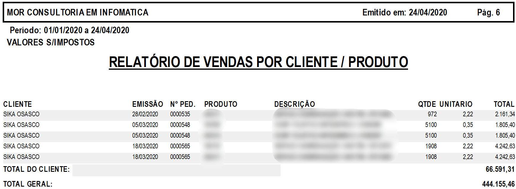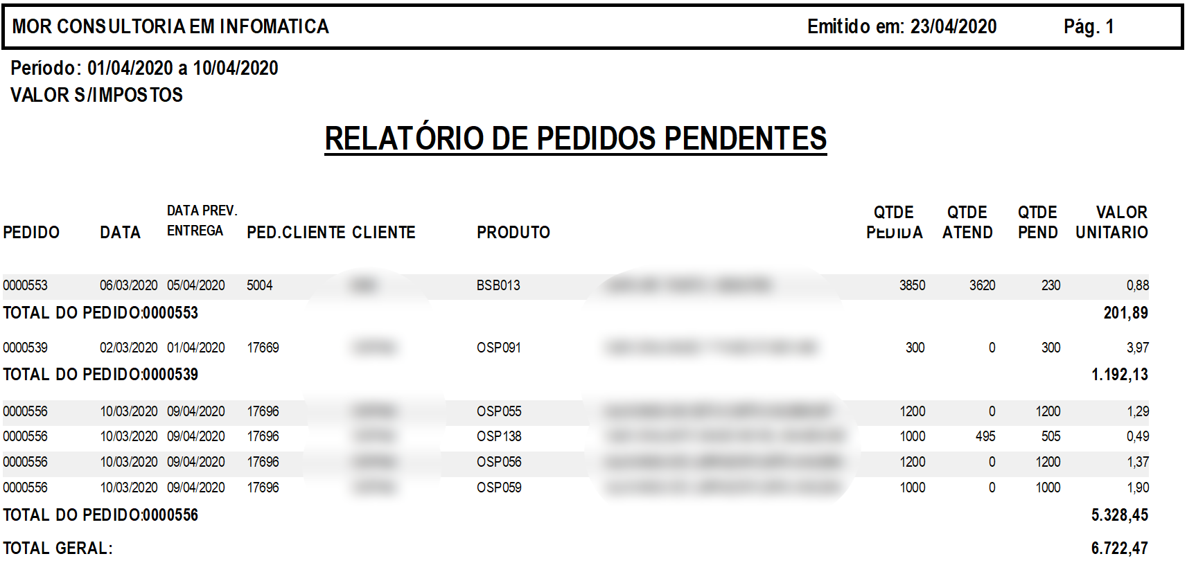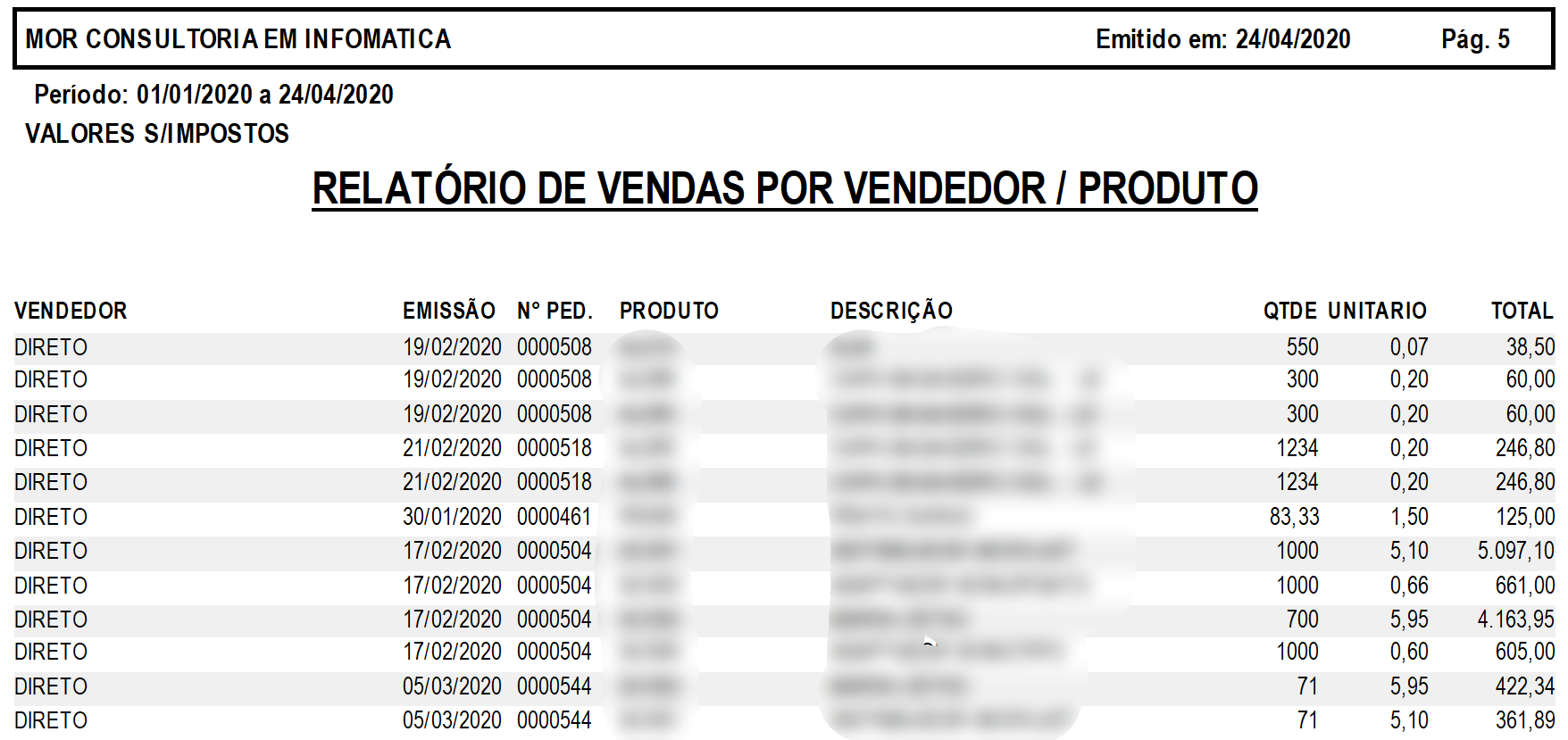 Pedidos por Vendedor e/ou Vendedor Produtos